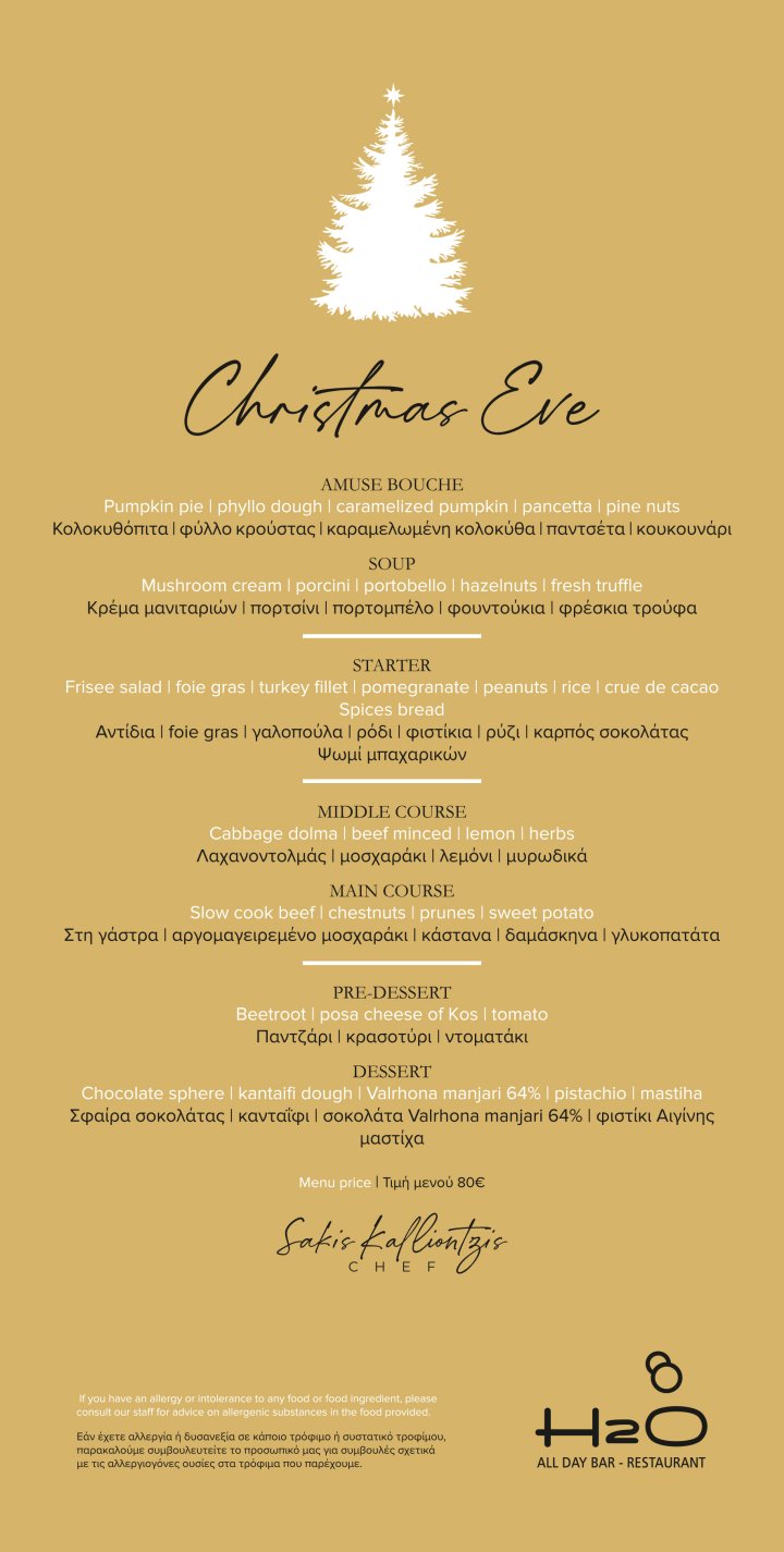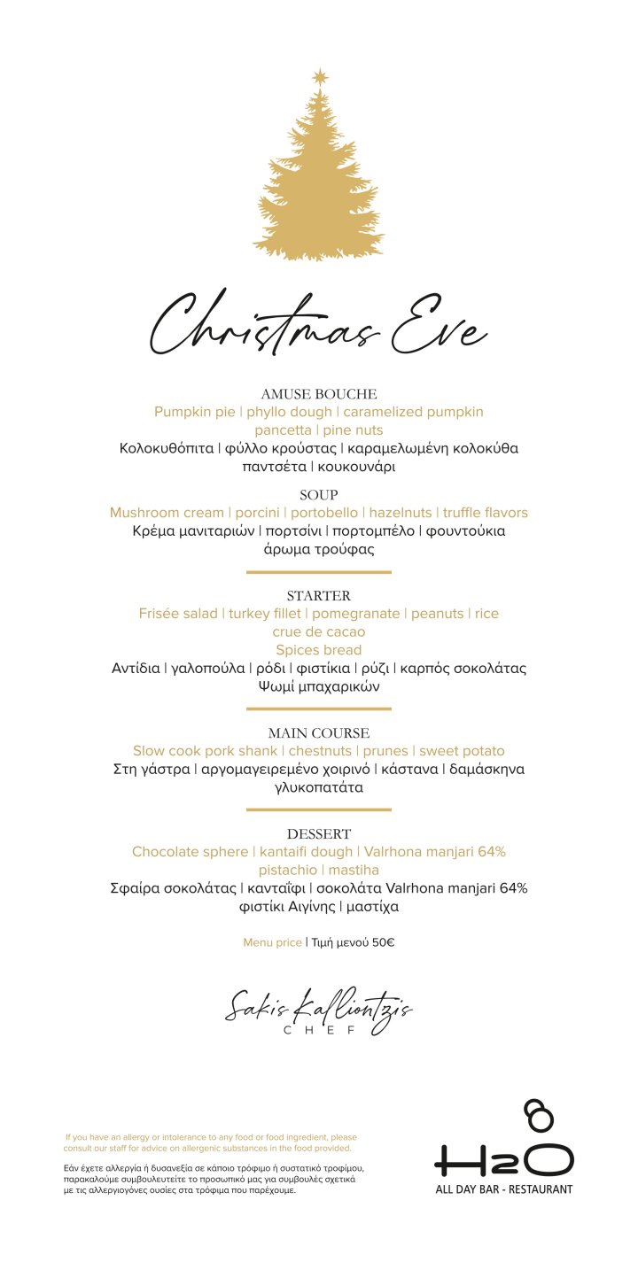 Inspired by tradition and the aromas of Greek cuisine, our Christmas menu, curated by Chef Sakis Kalliontzis, promises to take you on a journey through unique flavors.